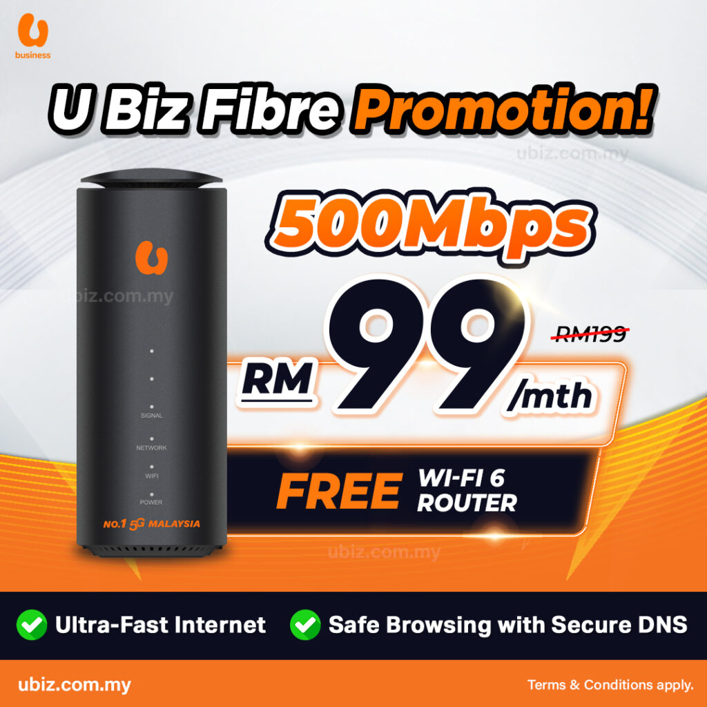 U Biz Fibre is U Mobile’s high-speed fibre-optic internet solution designed for businesses of all sizes — from SMEs to large enterprises, including retail outlets and other industries.